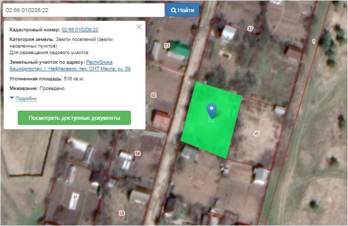 Земельный участок, категория земель земли населенных пунктов, вид разрешенного использования для ведения гражданами садоводства и огородничества, площадью 516 кв. м., с кадастровым номером 02:66:010208:22, расположенного по адресу: Республика Башкортостан, г Нефтекамск, тер. СНТ Мечта, уч 59.