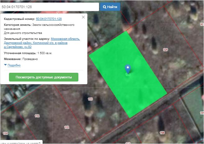 Земельный участок по адресу: Московская область, Дмитровский район, Костинский с/о, в районе д. Сергейково с видом разрешенного использования «для дачного строительства»