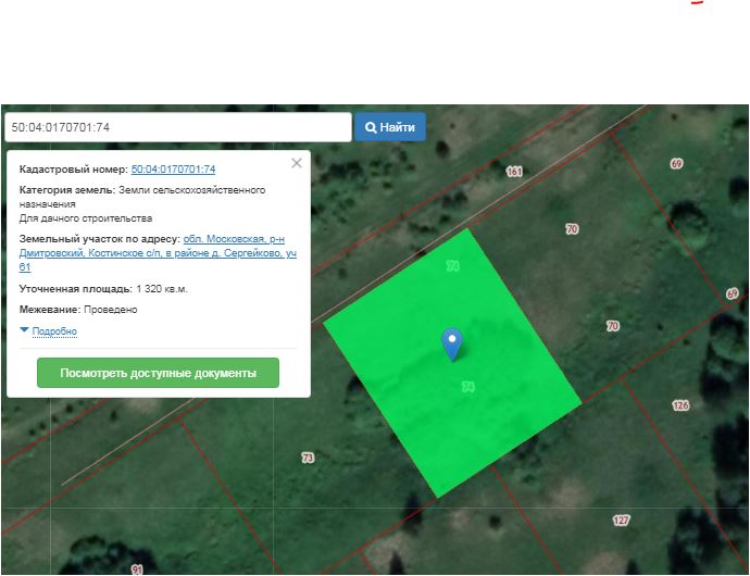 Участок 61 пл. 1320 кв.м. к/н 50:04:0170701:74