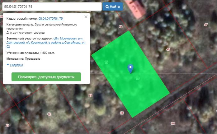Земельный участок по адресу: Московская область, Дмитровский район, Костинский с/о, в районе д. Сергейково с видом разрешенного использования «для дачного строительства»
