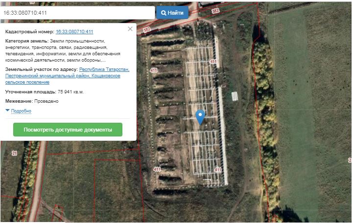 Земельный участок кадастровый номер 16:33:080710:411, адрес Республика Татарстан, Пестречинский муниципальный район, Кощаковское сельское поселение, назначение: в целях размещения складов; виды разрешенного использования земли промышленности, энергетики, транспорта, связи, радиовещания, телевидения, информатики, земли для обеспечения космической деятельности, земли обороны, безопасности и земли иного специального назначения; площадь 75941 кв.м. с объектом Складской комплекс (степень готовности не известна в связи с не передачей проектной и иной документации)