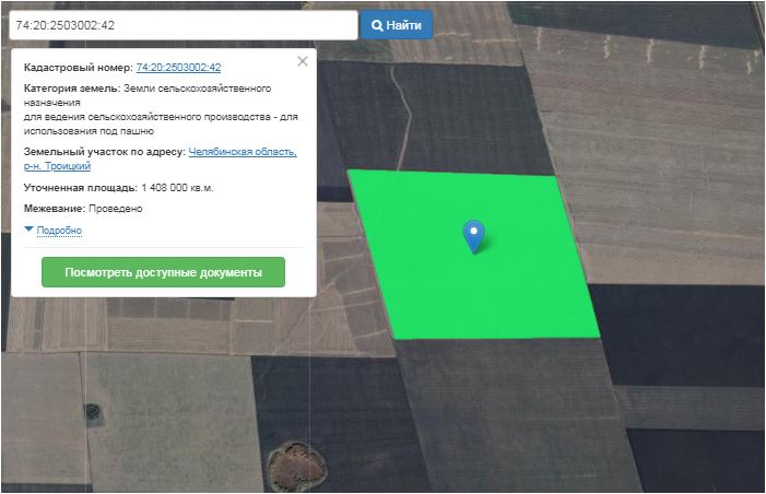 Земельный участок: виды разрешенного использования объекта недвижимости #8211; для ведения сельскохозяйственного производства #8211; для использования по пашню (земли сельскохозяйственного назначения), вид права, доля в праве #8211; общая долевая собственность: 88000/1408000, кадастровый номер: 74:20:2503002:42, адрес: Челябинская область, р-н Троицкий, площадь: 1 408 000.00 кв. м.