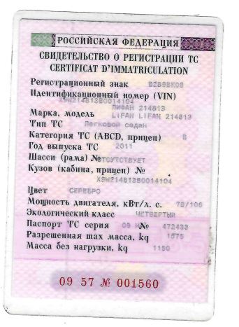 Транспортное средство марки LIFAN LIFAN 214813; Тип В, год выпуска: 2011, Цвет кузова: серебро; мощность двигателя, л.с. (кВт): 78 (106), регистрационный знак В289ВК09