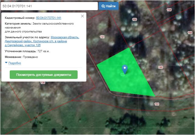 Участок 126 пл. 727 кв.м. к/н 50:04:0170701:141