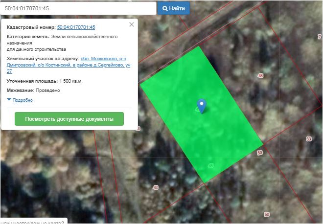 Земельный участок по адресу: Московская область, Дмитровский район, Костинский с/о, в районе д. Сергейково с видом разрешенного использования «для дачного строительства»