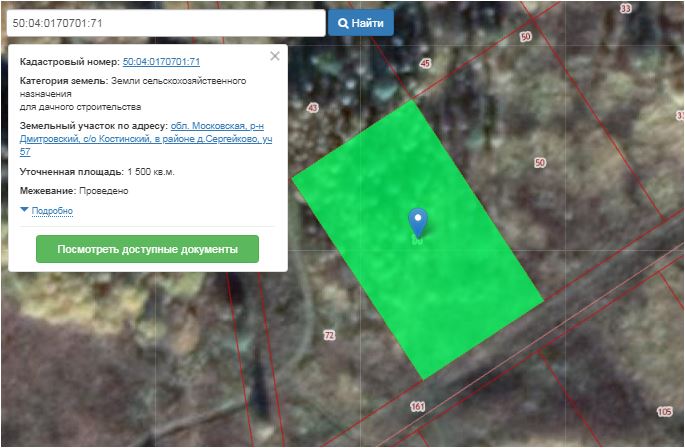 Земельный участок по адресу: Московская область, Дмитровский район, Костинский с/о, в районе д. Сергейково с видом разрешенного использования «для дачного строительства»