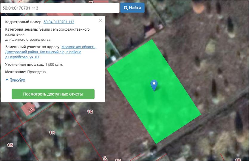 Участок 83 пл. 1500 кв.м. к/н 50:04:0170701:113 Московская область, Дмитровский район, Костинский с/о, в районе д. Сергейково с видом разрешенного использования «для дачного строительства»