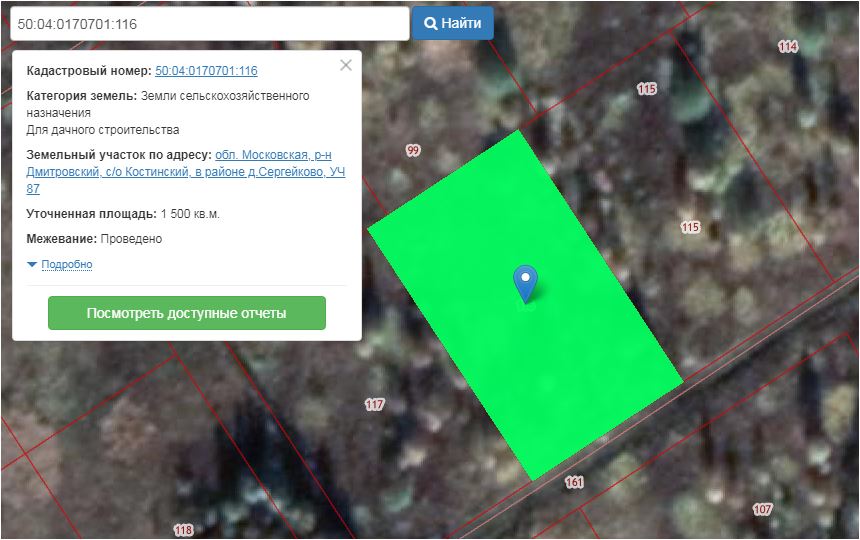 Участок 87 пл. 1500 кв.м. к/н 50:04:0170701:116 Московская область, Дмитровский район, Костинский с/о, в районе д. Сергейково с видом разрешенного использования «для дачного строительства»