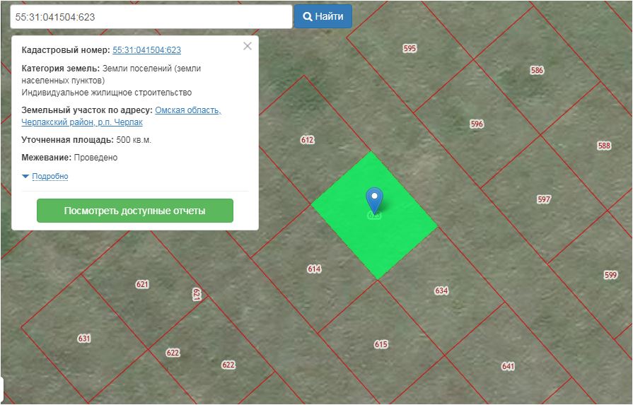 земельный участок для ИЖС с кадастровым номером 55:31:041504:623 площадью 500 кв.м., расположенный в р.п. Черлак Черлакского района Омской области. Обременение прав не зарегистрировано. Является совместной семейной собственностью должника. Основание регистрации в собственность - договор купли-продажи земельного участка от 25.04.2020 г.
