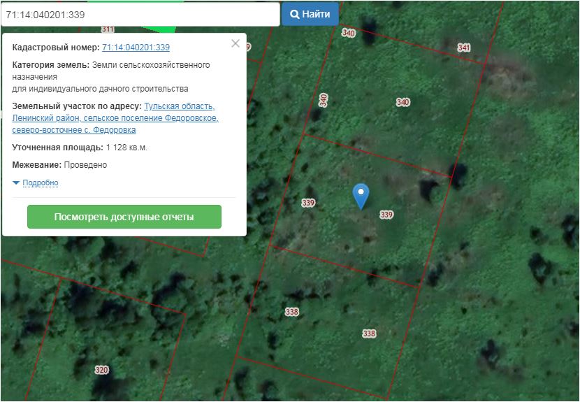 земельный участок с кадастровым номером 71:14:040201:339. Местонахождение: Тульская область, Ленинский район, сельское поселение Федоровское, северо-восточнее с. Федоровка. Вид разрешенного использования: для индивидуального дачного строительства. Площадь: 1128 кв.м.