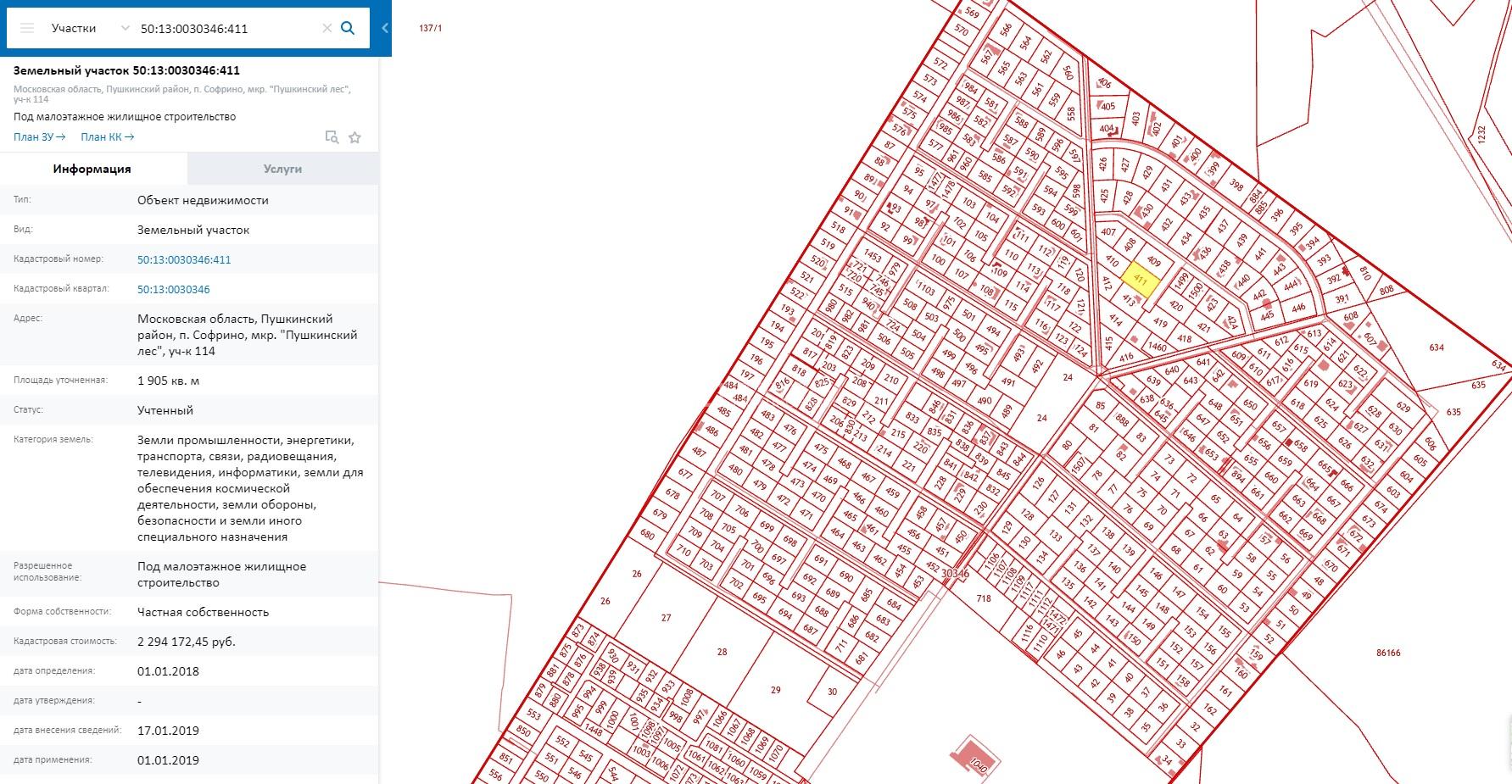 Земельный участок 114, площадь 1905 кв. м, кадастровый номер: 50:13:0030346:411, категория земель: земли промышленности, энергетики, транспорта, связи, радиовещания, телевидения, информатики, земли для обеспечения космической деятельности, земли обороны, безопасности и земли иного специального назначения, вид разрешенного использования: под малоэтажное жилищное строительство, местоположение: Московская область, Пушкинский район, пос. Софрино, мкрн "Пушкинский лес"; Земельный участок 112, площадь 1945 кв. м, кадастровый номер: 50:13:0030346:409, категория земель: земли промышленности, энергетики, транспорта, связи, радиовещания, телевидения, информатики, земли для обеспечения космической деятельности, земли обороны, безопасности и земли иного специального назначения, вид разрешенного использования: под малоэтажное жилищное строительство, местоположение: Московская область, Пушкинский район, пос. Софрино, мкрн "Пушкинский лес"; Два объекта незавершенного строительства площадью 365,6 кв. м (жилой дом) и 61,1 кв. м (гараж), не прошедшие государственный кадастровый учет и не зарегистрированные в установленном законом порядке.