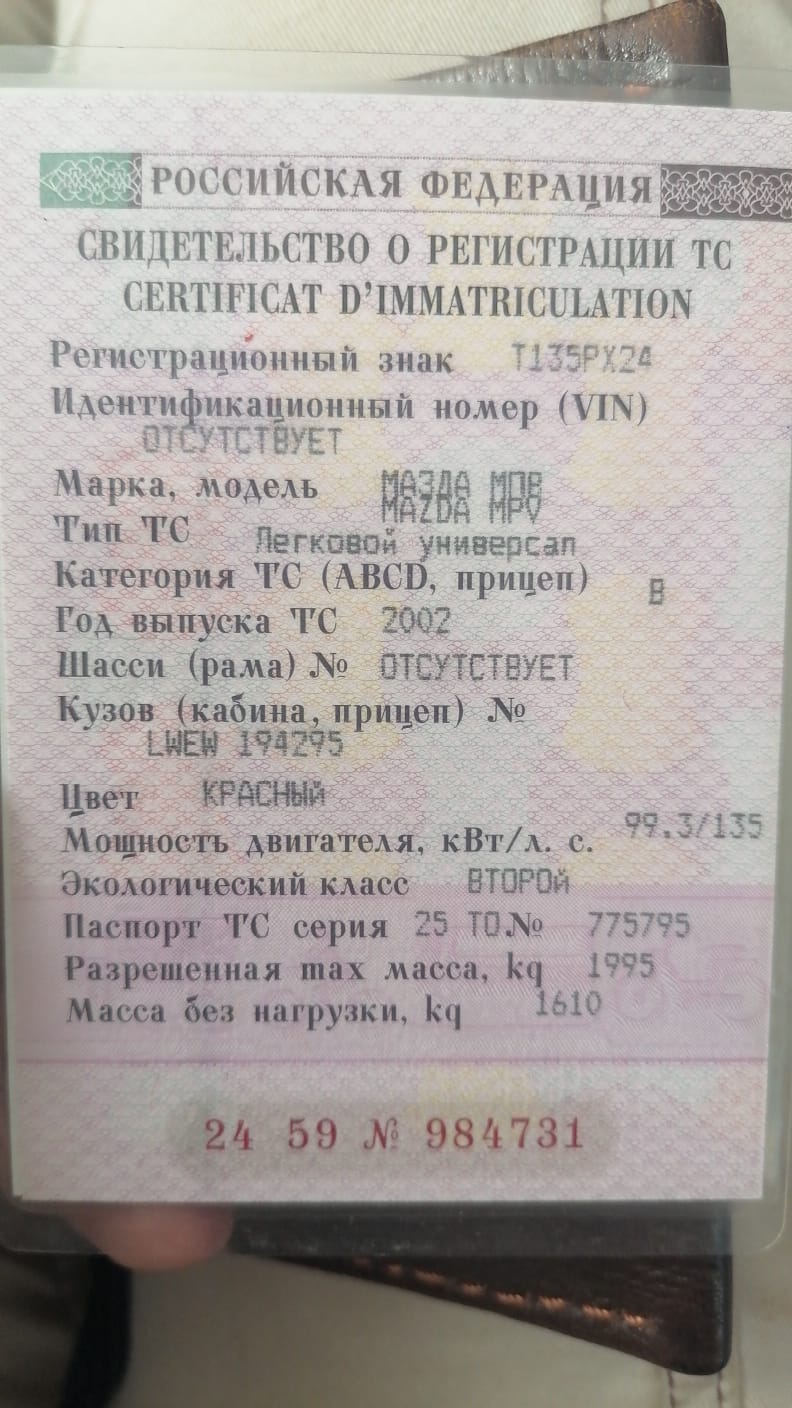 Автомобиль Марки MAZDA MPV 2002 г.в.