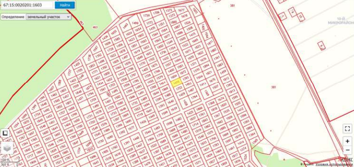 земельный участок Земельный участок, кадастровый номер 67:15:0020201:1603, Индивидуальное жилищное строительство, Российская Федерация, Смоленская область,Рославльский район, д.Новая Присмара, площадь 1617 кв.м.
