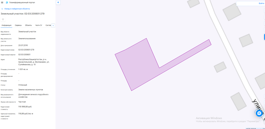 земельный участок Земельный участок для ведения личного подсобного хозяйства. Кадастровый номер: 02:03:200601:279. Адрес: Республика Башкортостан, р-н. Архангельский, д. Муллакаево, ул. Сулейманова, д. 10. Площадь: 1001 +/- 11