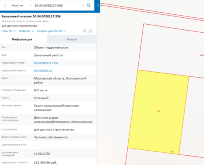 Земельный участок, кадастровый номер 50:34:0050117:556. Площадь 607 кв.м.