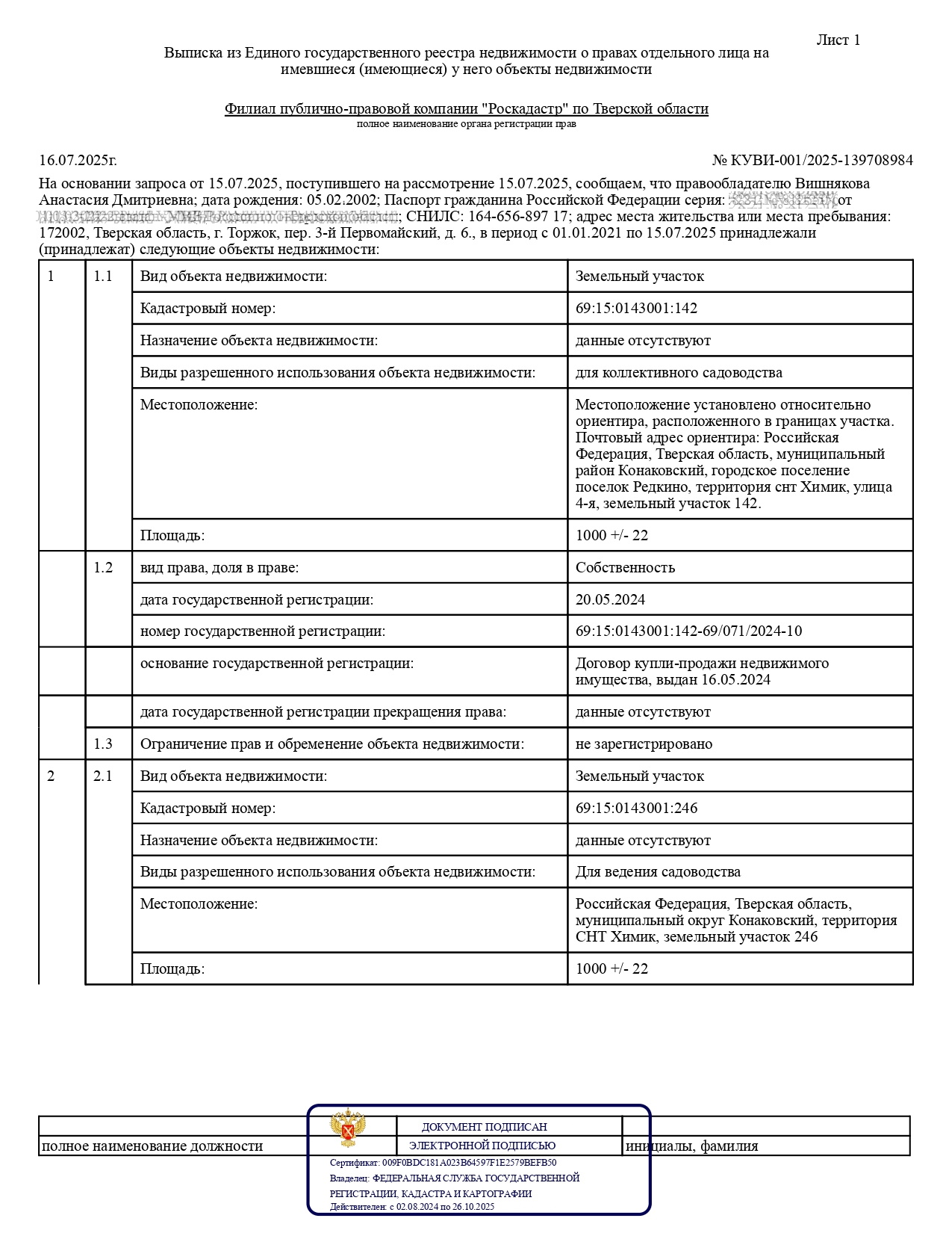 Земельный участок, кадастровый номер 69:15:0143001:142, Виды разрешенного использования: для коллективного садоводства, площадь 1000 +/- 22 кв.м., адрес: Местоположение установлено относительно ориентира, расположенного в границах участка. Почтовый адрес ориентира: Российская Федерация, Тверская область, муниципальный район Конаковский, городское поселение поселок Редкино, территория снт Химик, улица 4-я, земельный участок 142. Предоставление дополнительной информации об объектах продажи, обременении имущества, порядке проведения торгов, а также ознакомление с имуществом производится Организатором на основании заявления на ознакомление в свободной форме, направленного на электронную почту