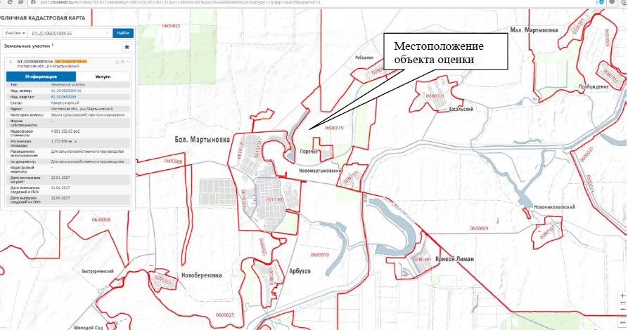 Лот №4: Земельный участок с/х назначения, кад. № 61:20:0600009:56, S-7788888 кв.м; общая долевая собственность 55,2 гектаров. Адрес: Ростовская обл., Мартыновский район, местоположение установлено относительно ориентира, расположенного в границах участка. Ориентир п. Новомартыновский, Мартыновский р-н, Ростовская обл. Участок находится примерно в 2,79 км от ориентира по направлению на северо-восток.