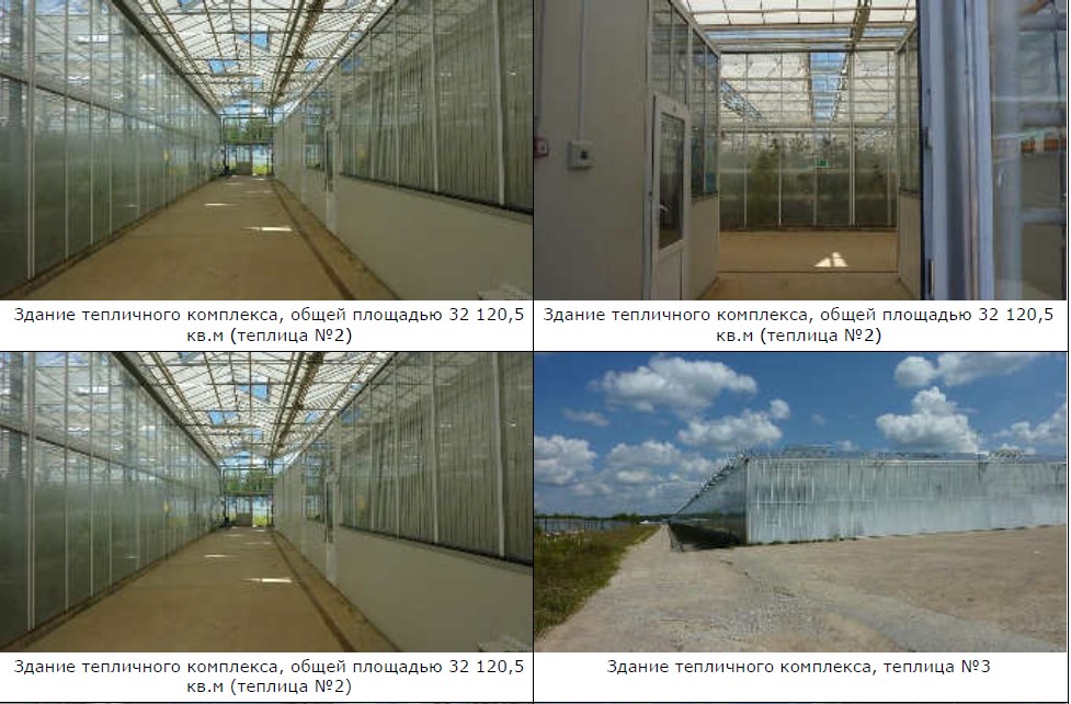 Продаже на торгах единым лотом подлежит следующее имущество находящееся по адресу: Калужская область, с. Недельное, ул. Молодежная, д. 12: 1) имущество обремененное залогом АКБ «Российский капитал» (ПАО): Здание тепличного комплекса (далее-ЗТК), теплица №1, назн.: нежилое, 1-этажн., общ. пл.32 025,6 кв.м, инв.№000000735,кад. № 40:13:130501:21, ЗТК, общ.пл. 32 120,5 кв.м, инв.№214, кад.№ 40:13:130501:46, ЗТК, теплица №3, назн.: нежилое, 1-этажн., общ.пл. 32 373,2 кв.м, инв.№000000736, кад.№ 40:13:130501:23, ЗТК,теплица №4, назн.: нежилое, 1-этажн., общ. пл. 69 484,7 кв.м, инв.№Г00000165, кад.№ 40:13:130501:22, ЗТК, теплица №5, назн.: сельскохозяйственное, 1этажн., общ. пл.108 007,3 кв.м, инв.№Г00000812,кад.№40:13:130501:19, Админ. здание, назн.: административно-управленческое, 2-этажн., общ. пл. 105,4 кв.м, лит. Стр. 1а, Стр. 16, инв.№Г00001267, кад.№ 40:13:130501:18, Здание пункта охраны, назн.: нежилое, 2этажн., общ. пл. 64,4 кв.м, кад.№ 40:13:130501:26,Сооружение электроснабжения, состоящее из проводов протяженностью 124 м, инв.№000000213, кад. № 40:13:130501:49, Сооружение газопровода из стальных и полиэтиленовых труб, 1 380,4 м, инв.№000000210 кад. №40:13:130501:48, Сооружение водопровода, протяженностью 146,5 м, инв.№000000209 кад.№ 40:13:130501:45,Сооружение водонапорной башни, высотой 24,0 м, объемом 50 куб.м, площадью 3,1 кв.м, инв.№000000208, кад.№ 40:13:130501:47, Сооружение наружной хозяйственно-бытовой канализации состоящей из 21 смотрового колодца протяженностью 334,5 м, инв.№000000211 кад.№ 40:13:130601:652, подробный перечень имущества в составе Лота и описание содержится в дополнительном документе к Лоту.