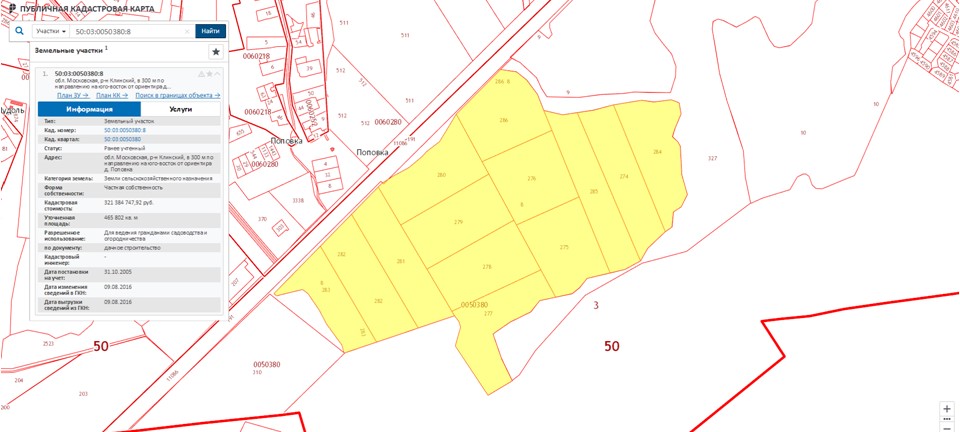 зем. участок, пл. 465 802 кв.м., категория земель: земли с/х назначения, дачное строительство, кад. № 50:03:0050380:8,по адресу: Моск. обл. Клинский р-н, в 300 м. по направлению,на юго-восток, от ориентира д.Поповка