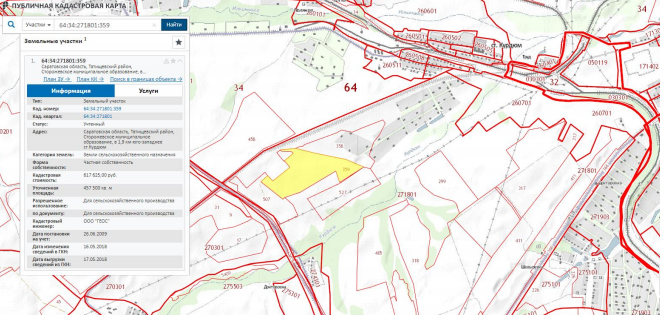 Земельный участок, Кадастровый №64:34:271901:36, назначение объекта недвижимости: для строительства зданий, строений и сооружений, используемыми для производства, хранения и первичной переработки сельскохозяйственной продукции, виды разрешенного использования объекта недвижимости: земли с/х назначения, адрес: Саратовская обл., Татищевский р-он, Сторожевское муниципальное образование, в 5,6км, юго-восточнее с.Курдюм, площадь: 2000000кв.м. Земельный участок, кадастровый № 64:34:271801:358, назначение объекта недвижимости: для с/х производства, виды разрешенного использования объекта недвижимости: Земли с/х назначения, Адрес: Саратовская обл., Татищевский р-он, Сторожевское муниципальное образования, площадь: 366000 кв.м. Земельный участок, кадастровый №64:34:271801:317, назначение объекта недвижимости: для с/х производства, виды разрешенного использования объекта недвижимости: земли с/х назначения, адрес: Саратовкая обл, Татищевский р-он, Сторожевское муниципальное образование, в 1 км 600 м-2 км юго-восточнее ст. Курдюм, вдоль газопроводов Песчаный Умет-Сторожевка, 2 нитка, Площадь: 1200000кв.м. Земельный участок, кадастровый №64:34:271801:318, назначение объекта недвижимости: для с/х производства, виды разрешенного использования объекта недвижимости: земли сельскохозяйственного назначения, Адрес: Саратовкая обл, Татищевский р-он, Сторожевское муниципальное образование, в 3км 600м-3 км 400 м юго-восточнее ст.Курдюм, вдоль газопроводов Песчаный Умет-Сторожевка, 2 нитка, примыкающий к автомобильной дороге Саратов-Томбов, Площадь: 2100000кв.м. Земельный участок, кадастровый № 64:34:271801:359, назначение объекта недвижимости: Для с/х производства, виды разрешенного использования объекта недвижимости: Земли с/х назначения, адрес: Саратовкая обл, Татищевский р-он, Сторожевское муниципальное образование, в 1,9 км юго-западнее ст.Курдюм, Площадь:457500кв.м