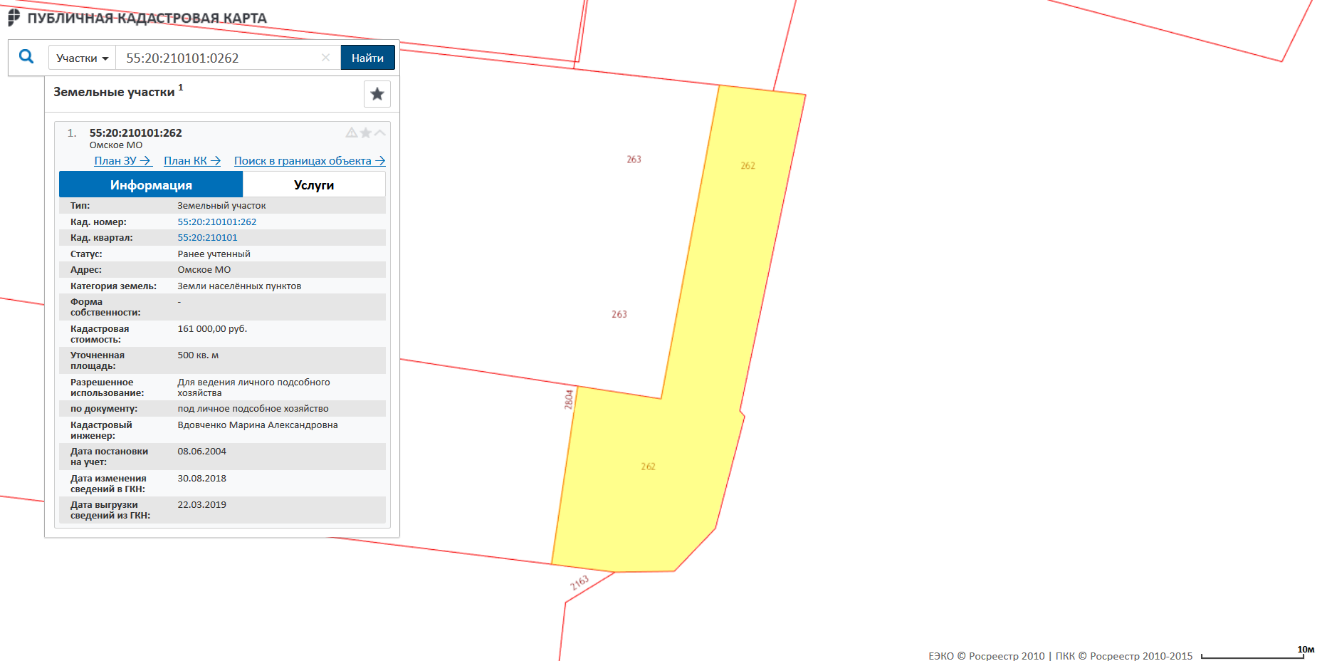 Земельный участок площадью 500 кв.м., кадастровый номер 55:20:210101:0262 предоставлен под личное подсобное хозяйство, адрес: Омская область, Омский район, в границах Ростовского сельского округа
