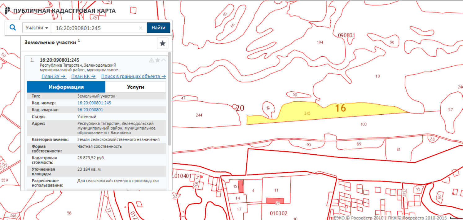 Земельный уч., КЗ: земли сельскохозяйственного назначения, РИ: для сельскохозяйственного производства, общ. пл. 23184 кв.м., КН: 16:20:090801:245, адрес установлен относительно ориентира, расположенного в границах участка. Почт. адрес: РТ, Зеленодольский муницип. район, муницип. образование пгт Васильево.