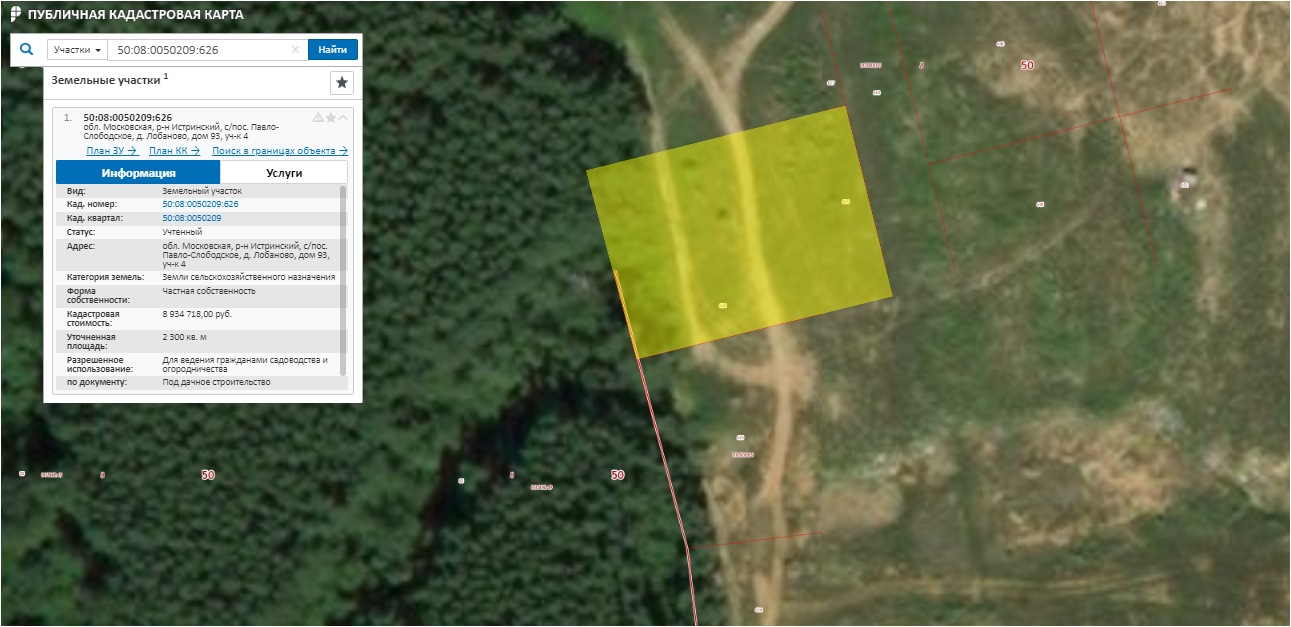 Земельный участок, категория земель: земли сельскохозяйственного назначения, разрешенное использование: для ведения гражданами садоводства и огородничества, площадью 2300,00 кв. м., адрес: МО, Истринский район, с/пос Павло-Слободское, дер. Лобаново, д.93, уч.№4 находится примерно в 770 м по направлению на северо-запад от ориентира жилой дом, расположенного за пределами участка, кадастровый номер 50:08:0050209:626