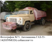 Автомашина ГАЗ-53-14 (Е 059 МО 26) собаколов+го, инв. №5351055. VIN - н/у, марка, модель ТС - ГАЗ5314, тип ТС - грузовой-подметально-убороч, категория ТС - С, год выпуска - 1986, модель, № двигателя - Д5311-28252, шасси, № - 0989795, кузов, н/у, цвет кузова - желтый, мощность двигателя - 120 л.с., рабочий объем двигателя - 4800 куб.см., тип двигателя - бензиновый, разрешенная максимальная масса - н/у., масса без нагрузки - н/у., организация-изготовитель ТС (страна) - «Горьковский автозавод», гос. номер - Е059МО26. Для дальнейшей эксплуатация транспортного средства необходим провести капитальных ремонт. Техническое состояние оценивается как «условно пригодное». ПТС 26-КВ-364707.