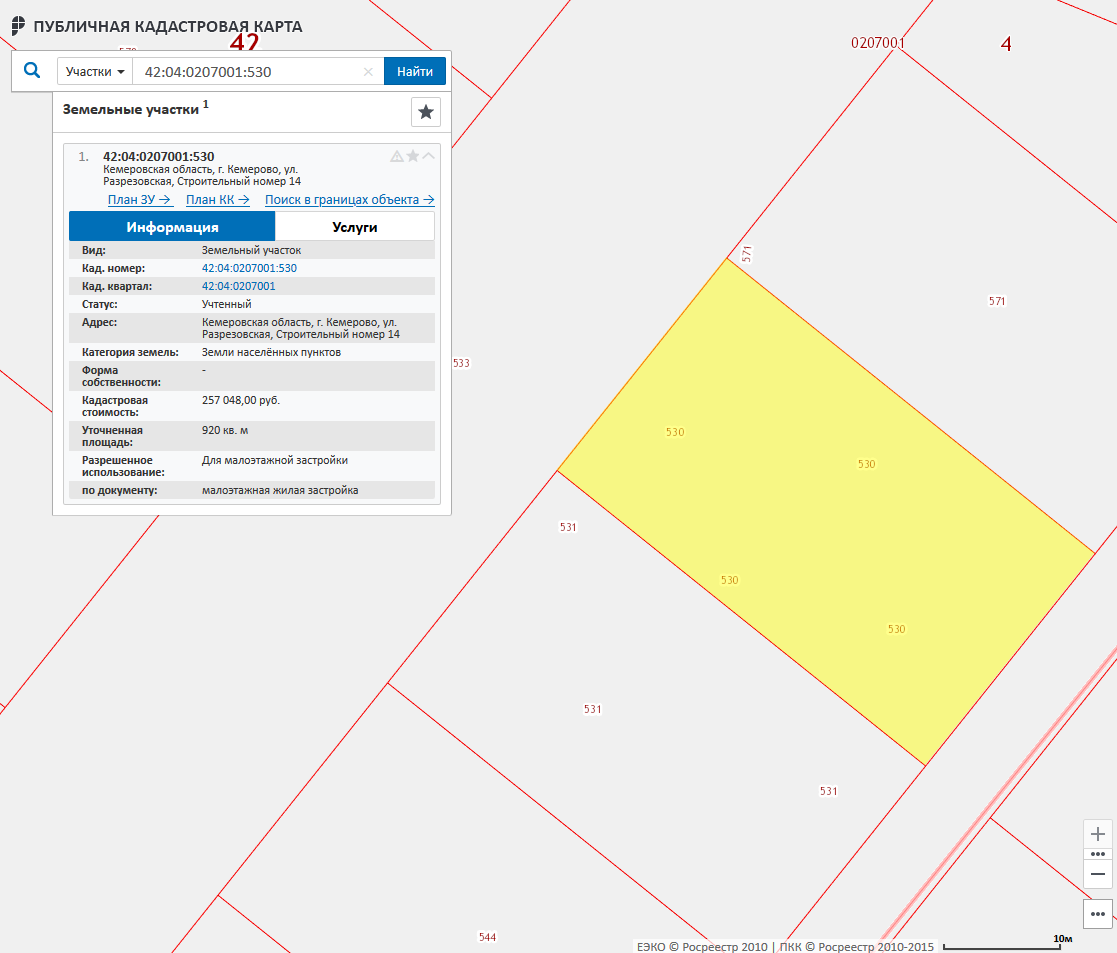 Лот №1: Земельный участок, кадастровый номер 42:04:0207001:530, номер гос.регистрации 42-42-01/365/2013-129, 920 кв.м. (1/5 доли).