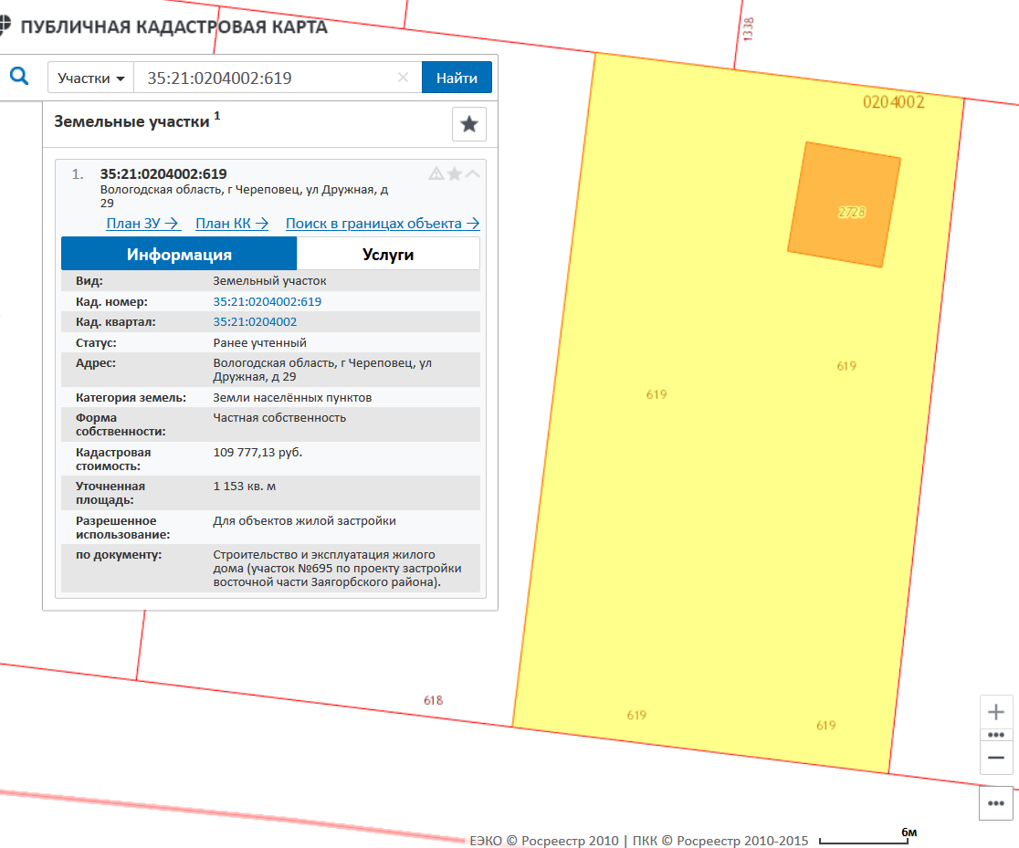 земельный участок, категория земель: земли населенных пунктов, разрешенное использование: для строительства и эксплуатации жилого дома, общая площадь 1 153 кв.м., кад. № 35:21:0204002:619, адрес: Вологодская обл., г. Череповец, ул. Дружная, д. 29; жилой дом общей площадью 62,8 кв.м., расположенный по адресу: Вологодская обл., г. Череповец, ул. Дружная, д. 29, кад. № 35:21:0204002:2728.