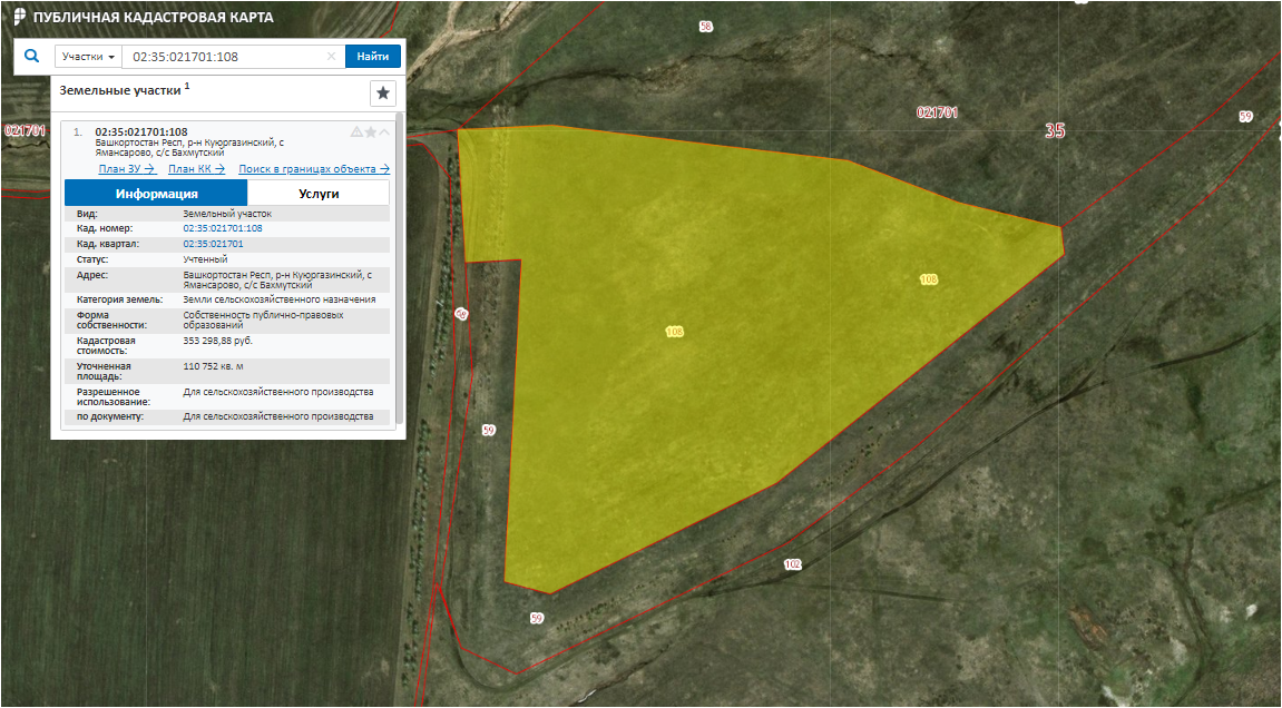 Лот№ 168 Право аренды зем. участка, с/х назначения, S= 110 752 м2,, кад. № 02:35:021701:108 срок договора аренды до 10.10.2026 г., участок расположен в Респ. Башкортостан, Куюргазинский район, форма собственности земельного участка муниципальная.