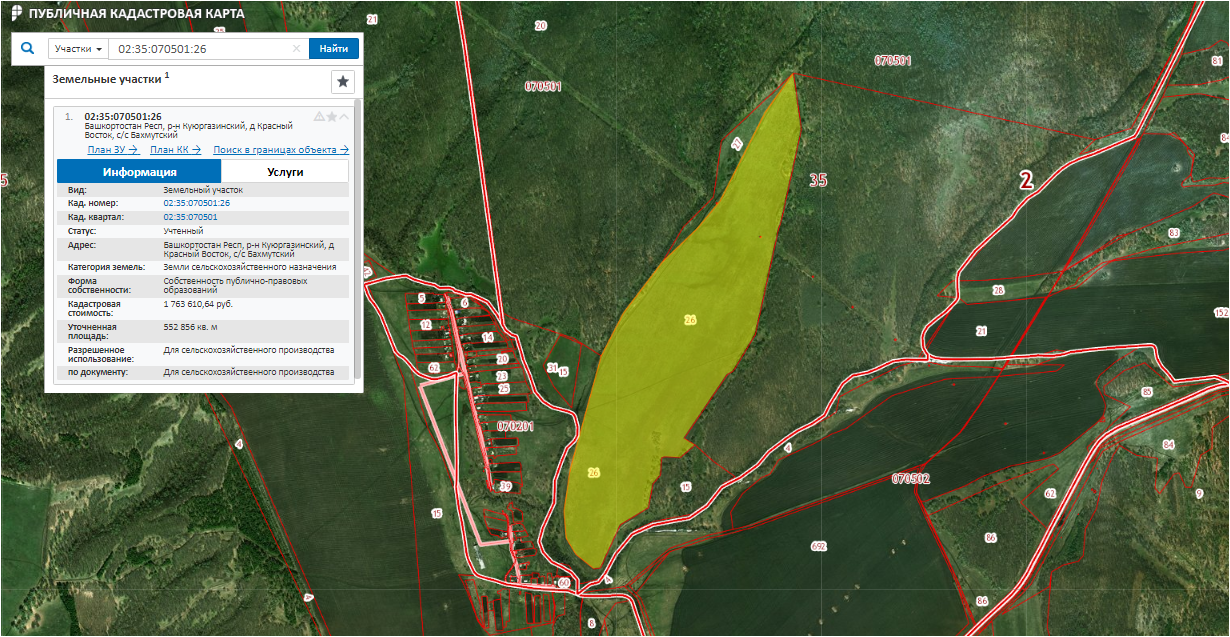 Лот № 189 Право аренды зем. участка, с/х назначения, S= 552 856 м2 (+/-6506 м2), кад. № 02:35:070501:26 срок договора аренды до 10.10.2026 г., участок расположен в Респ. Башкортостан, Куюргазинский район, форма собственности земельного участка муниципальная.