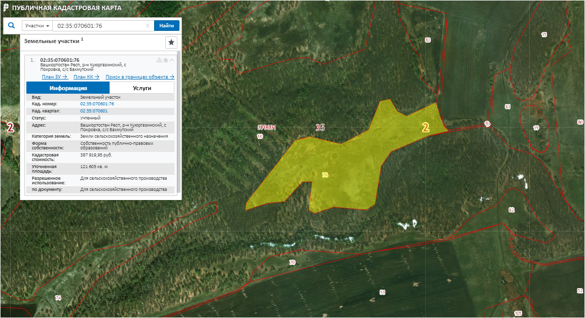 Лот № 198 Право аренды зем. участка, с/х назначения, S= 121 605 м2, кад. № 02:35:070601:76 срок договора аренды до 10.10.2026 г., участок расположен в Респ. Башкортостан, Куюргазинский район, форма собственности земельного участка муниципальная.