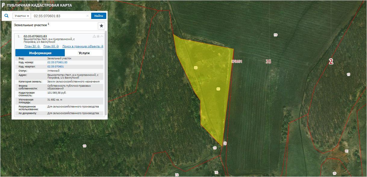 Лот № 205 Право аренды зем. участка, с/х назначения, S= 31 682 м2, кад. № 02:35:070601:83 срок договора аренды до 10.10.2026 г., участок расположен в Респ. Башкортостан, Куюргазинский район, форма собственности земельного участка муниципальная.