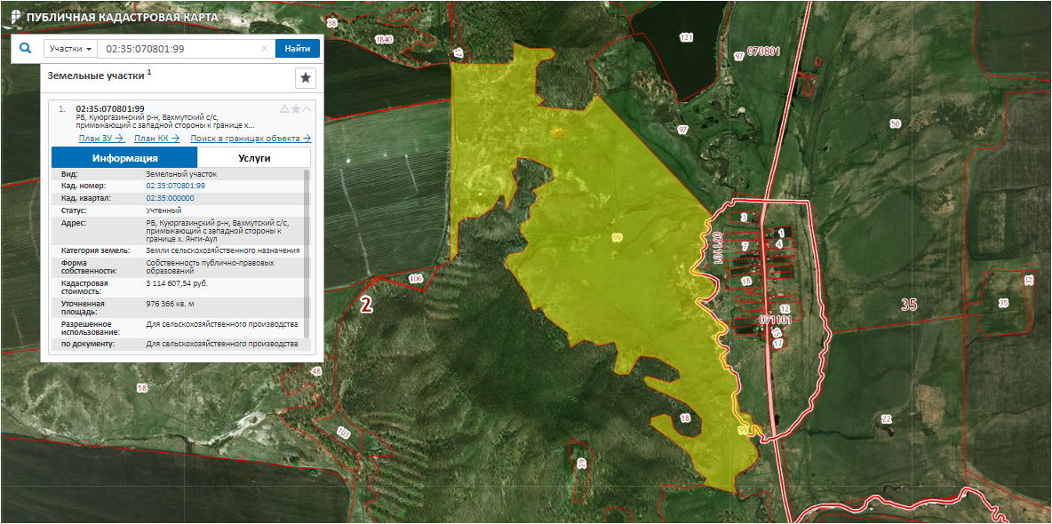 Лот № 211 Право аренды зем. участка, с/х назначения, S= 976 366 м2, кад. № 02:35:070801:99 срок договора аренды до 10.10.2026 г., участок расположен в Респ. Башкортостан, Куюргазинский район, форма собственности земельного участка муниципальная.
