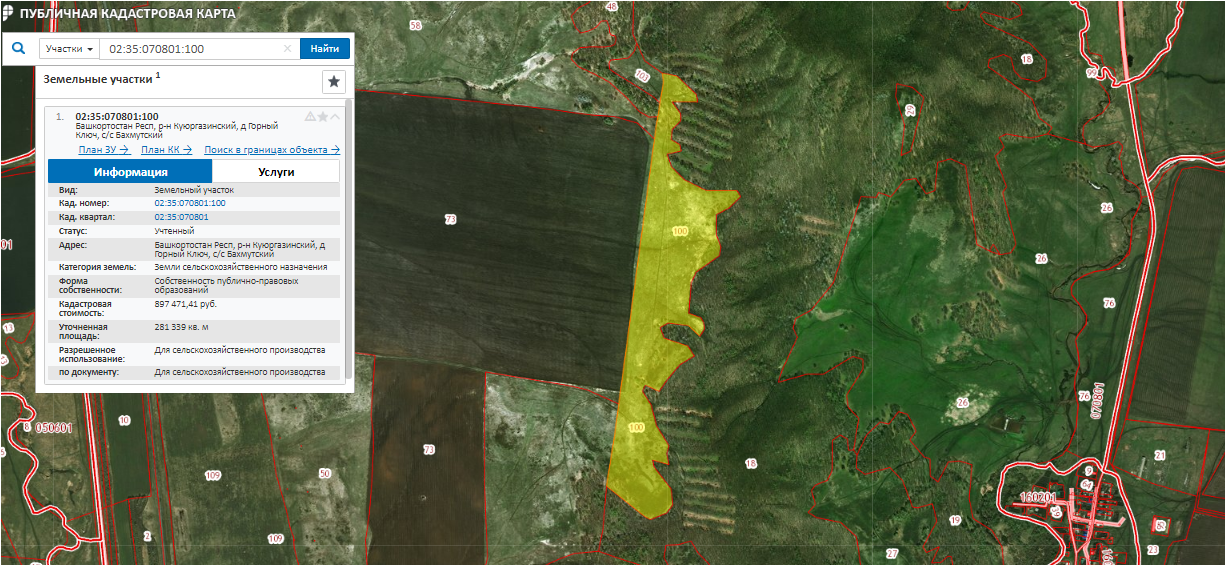 Лот № 212 Право аренды зем. участка, с/х назначения, S= 281 339 м2, кад. № 02:35:070801:100 срок договора аренды до 10.10.2026 г., участок расположен в Респ. Башкортостан, Куюргазинский район, форма собственности земельного участка муниципальная.