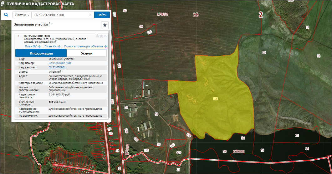 Лот № 253 Право аренды зем. участка, с/х назначения, S= 686 998 м2, кад. № 02:35:070801:108 срок договора аренды до 24.10.2026 г., участок расположен в Респ. Башкортостан, Куюргазинский район, форма собственности земельного участка муниципальная.