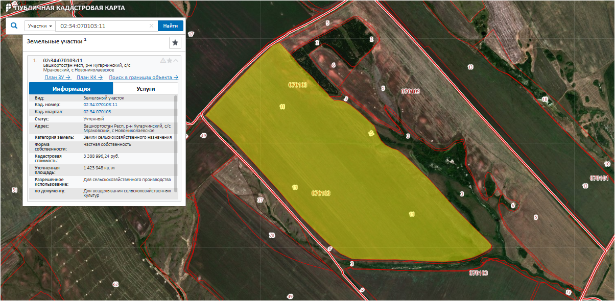Лот № 283 Право аренды зем. участка, с/х назначения, S= 1 423 948 м2, кад. № 02:34:070103:11 срок договора аренды до 19.03.2024 г., участок расположен в Респ. Башкортостан, Кугарчинский район, форма собственности земельного участка паевые.