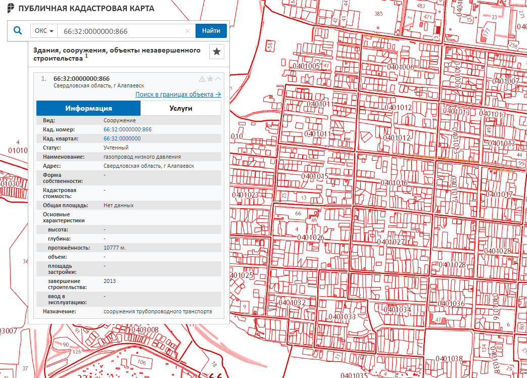 Газопровод низкого давления, протяженностью 10 777 м, кадастровый номер 66:32:0000000:866.