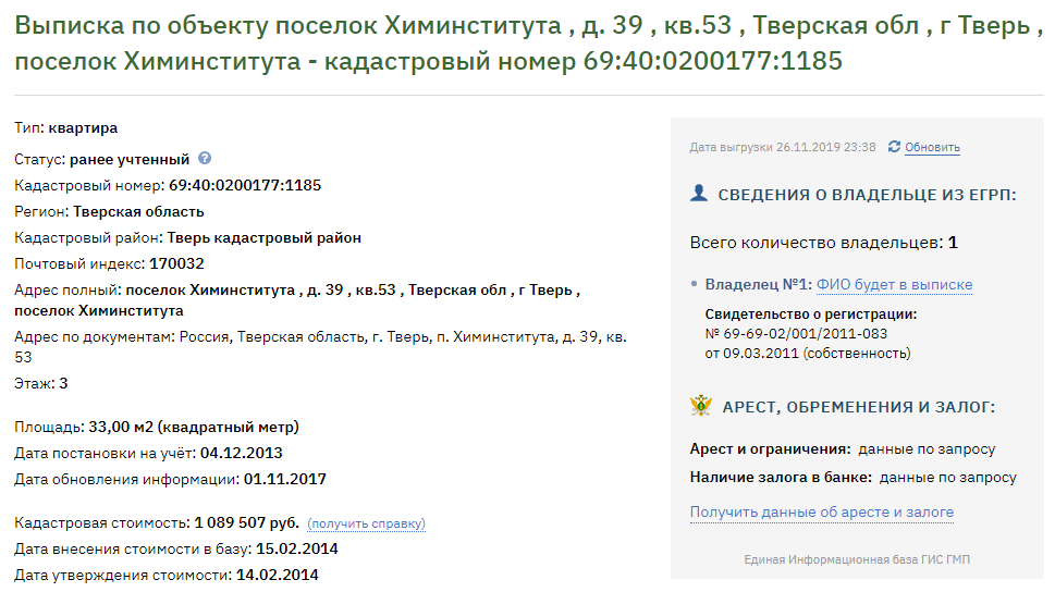 Помещение 33,4 кв.м. с кадастровым номером 69:40:0200177:1185, адрес Тверская область, г. Тверь, п. Химинститута, д. 39, кв. 5.