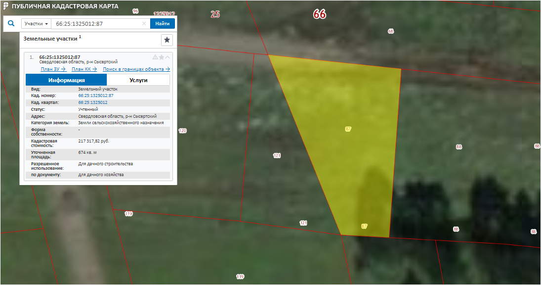 1/2 доли в праве собственности на земельный участок с кадастровым номером 66:25:1325012:87