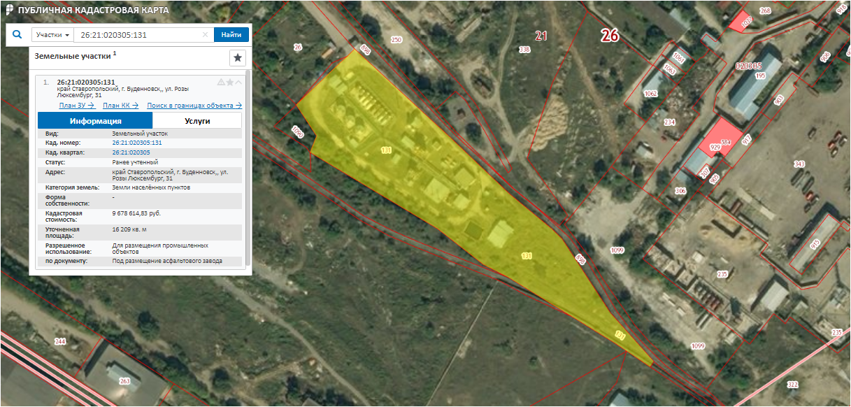Лот №1 – Земельный участок 16 209,37 кв.м, кад.№26:21:020305:131, адрес: Ставропольский край, г.Буденновск, ул.Р.Люксембург, 31