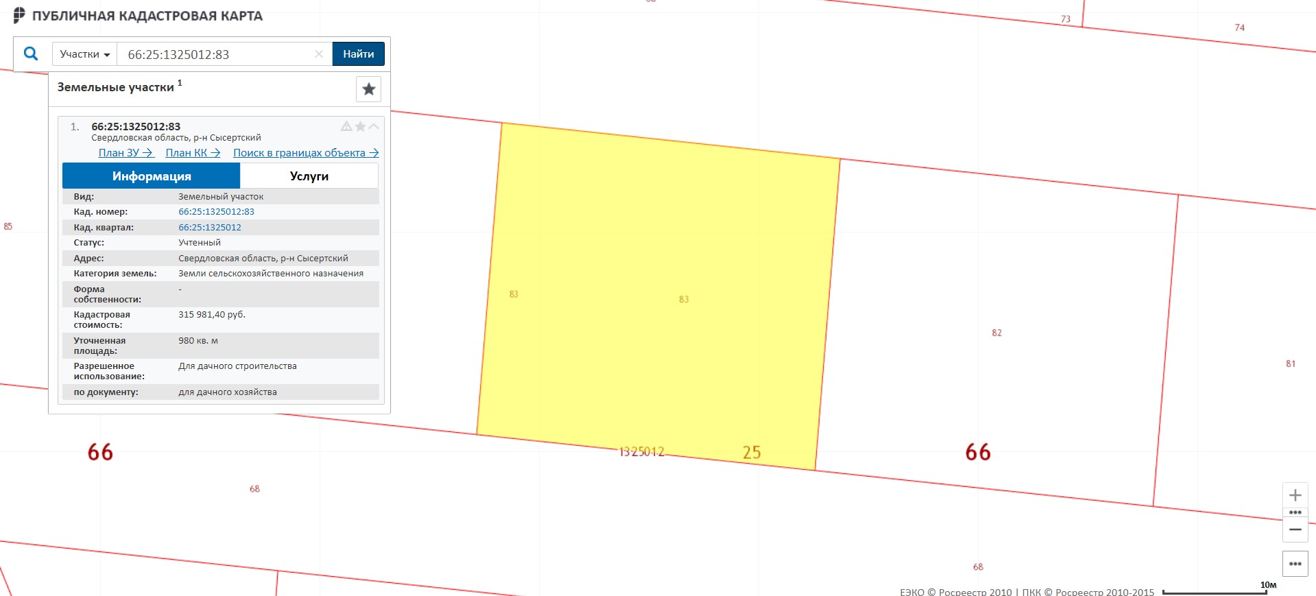 Земельный участок с Кадастровым номером 66:25:1325012:83