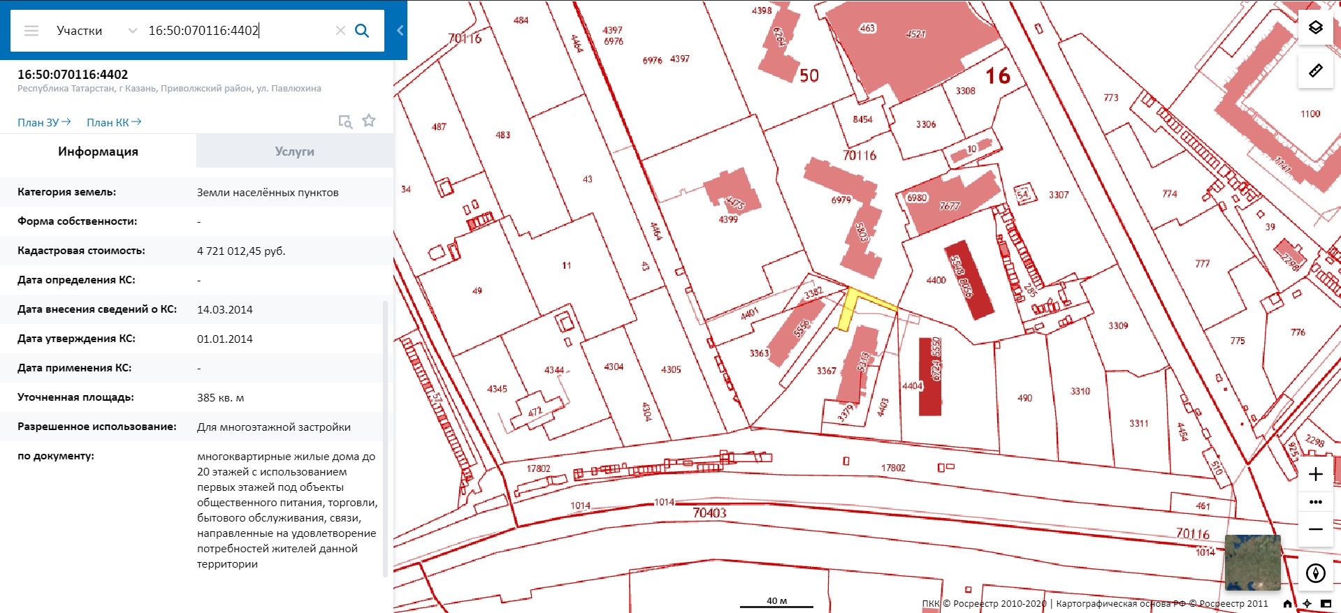 Земельный участок с кадастровым номером 16:50:070116:4402 площадью 385 кв.м., расположенный по адресу г. Казань, ул. Павлюхина.