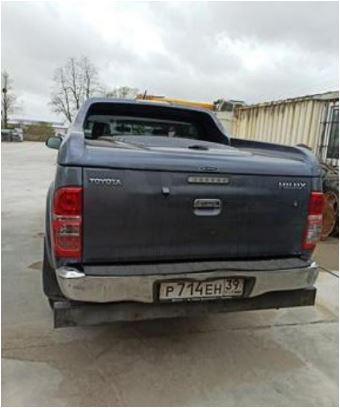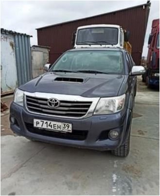 автомобиль Грузовой-бортовой марки (модели) TOYOTA HILUX; зав. № AHTF229CIX09076349; страна производитель: Южная Африка, 2012 года выпуска; ПТС: 39 УС 145312, Гос. знак № Р714ЕН39; инвентарный номер № 0000190
