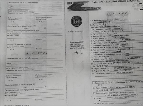 Автомобиль легковой LAND ROVER RANGER ROVER SPORT, 2014 г.в., г.р.з. С752ЕЕ142, ПТС 78 УУ 273995