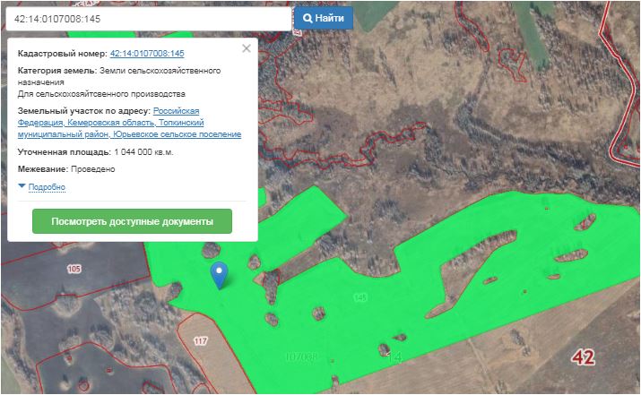 земельный участок, земли сельскохозяйственного назначения – для сельскохозяйственного производства, кадастровый номер 42:14:0107008:145, площадь 1044000 кв.м.Кемеровская обл., Топкинский район.