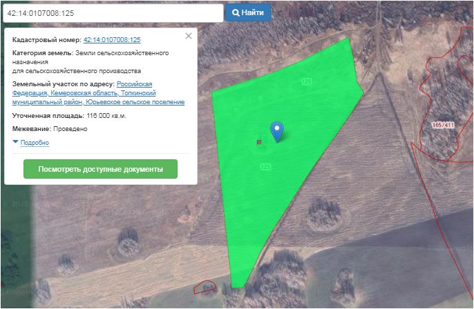 земельный участок, земли сельскохозяйственного назначения – для сельскохозяйственного производства, кадастровый номер 42:14:0107008:125, площадь 116000 кв.м.Кемеровская обл., Топкинский район.